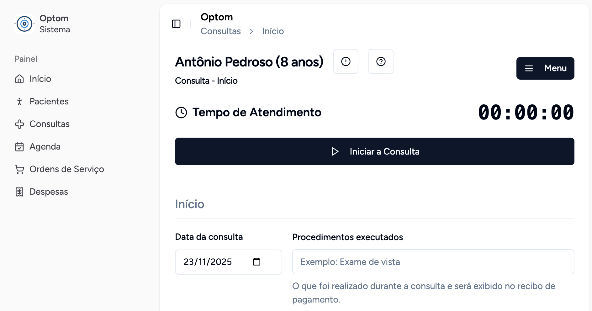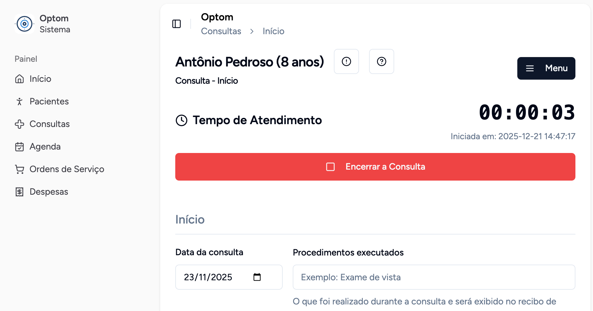Desta forma você pode controlar quanto tempo está gastando em cada atendimento e conseguir otimizar as suas consultas.